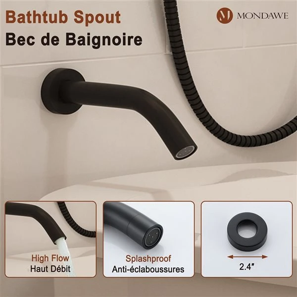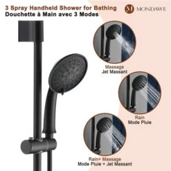 Be the first to review “Mondawe 3-Function Wall Mounted Matte Black Built-in Rainfall Shower System With Spout” Cancel reply