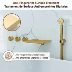 Be the first to review “Mondawe Brushed Gold 3-Handle Wall-Mount Bathtub Faucet With Hand Shower” Cancel reply