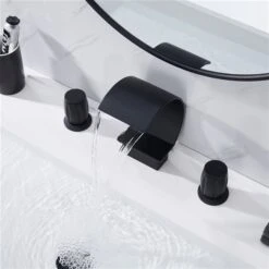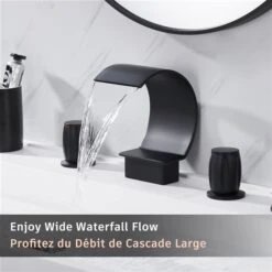 Be the first to review “Mondawe Matte Black 2-handle Widespread Arc Waterfall Bathroom Sink Faucet” Cancel reply