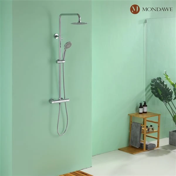 Mondawe Thermostatic Shower Bar System With Round Shower Head-in Chrome