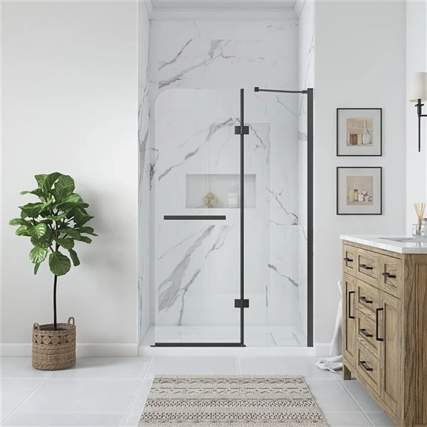Be the first to review “OVE Decors Annie 72.01-in H X 45.39-in To 46.18-in W Frameless Hinged Black Shower Door (Clear Glass)” Cancel reply