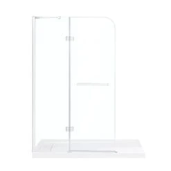- Includes a 45-in frameless glass panel, a curved hinged glass door and hardware