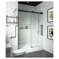 Ove Decors Sierra Sliding Shower Door – Adjustable Width – Tempered Clear Glass – Black Matte Finish