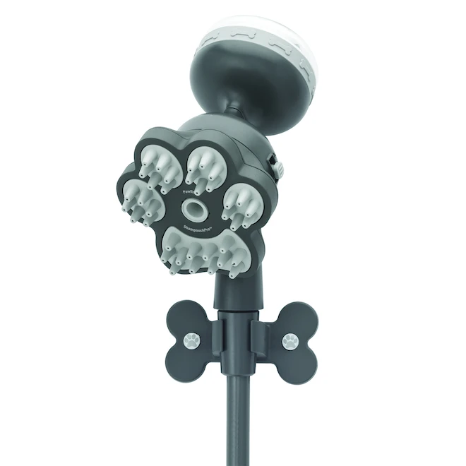 - Shampoo holder dispenses your pooch’s favorite shampoo