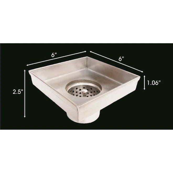 Modernize the look of your bathroom with this Reln tile shower drain. It’s made of stainless steel and measures 6 in x 6 in. It includes a hair and debris filter and is easy to install.