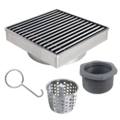 This stainless steel shower drain from Reln will help you update the look of your bathroom. It measures 6 inches square and has linear openings that will let the water flow out.