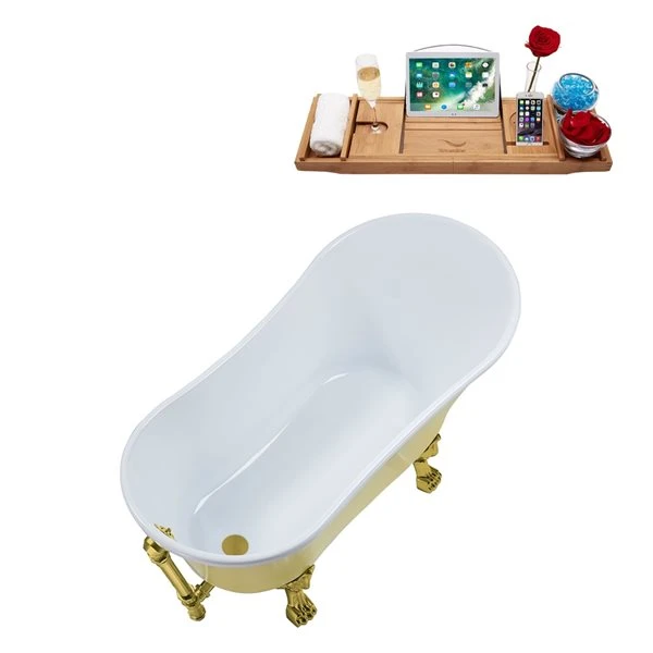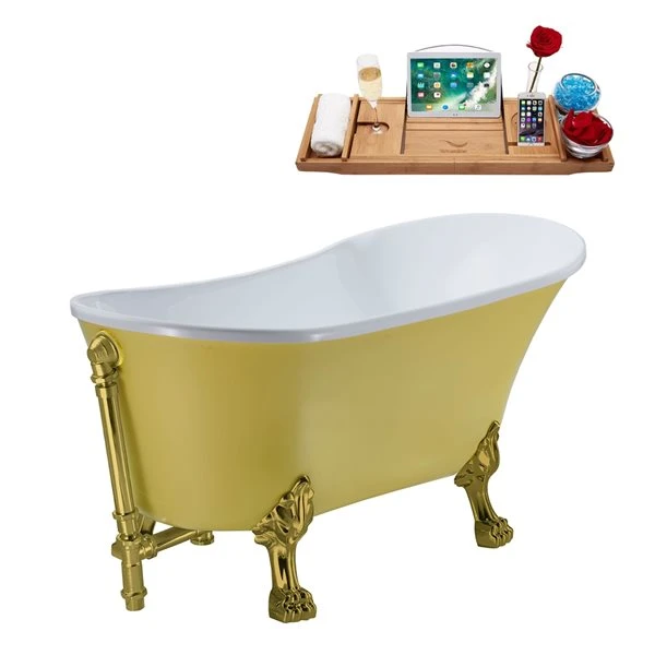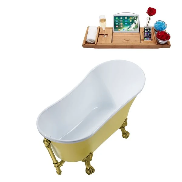Streamline 26.8-in W X 55.1-in L Yellow Acrylic Oval External Drain Clawfoot Bathtub – Tub Tray Included