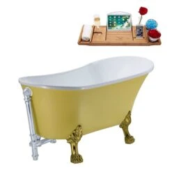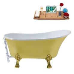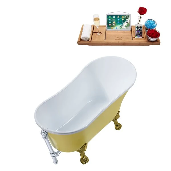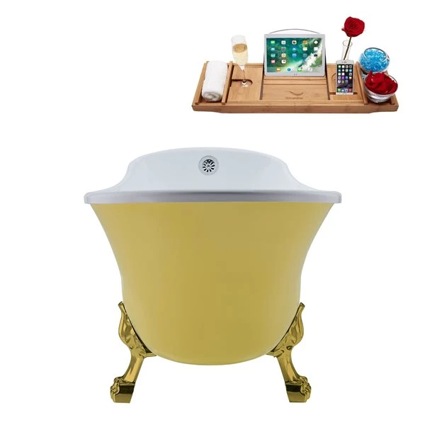 Streamline 26.8-in W X 55.1-in L Yellow Acrylic Oval External Drain Clawfoot Bathtub With Tub Tray Included
