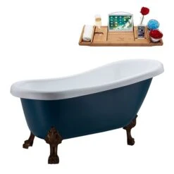 Be the first to review “Streamline 27.5-in X 61-in Oval Blue And Oil-Rubbed Bronze Acrylic Clawfoot Bathtub With Brushed Gold Drain And Tray” Cancel reply