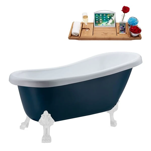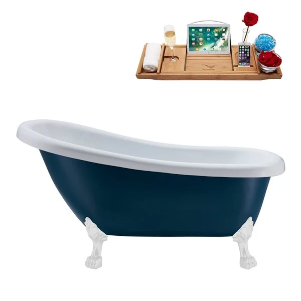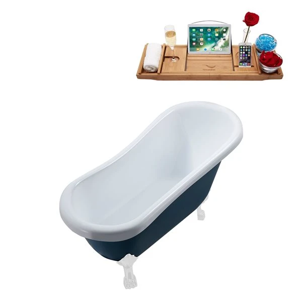 Streamline 27.5-in X 61-in Oval Blue And White Acrylic Clawfoot Bathtub With Brushed Gun Metal Drain And Tray
