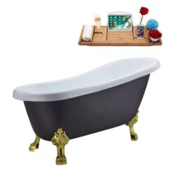 Be the first to review “Streamline 27.5-in X 61-in Oval Grey And Brushed Gold Acrylic Clawfoot Bathtub With Brushed Nickel Drain And Tray” Cancel reply