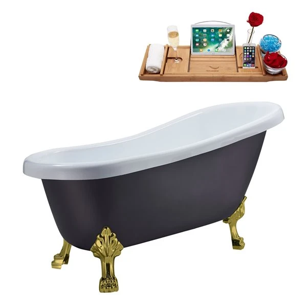 Streamline 27.5-in X 61-in Oval Grey And Brushed Gold Acrylic Clawfoot Bathtub With Brushed Nickel Drain And Tray