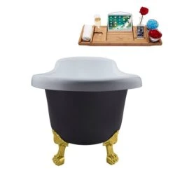 Be the first to review “Streamline 27.5-in X 61-in Oval Grey And Gold Acrylic Clawfoot Bathtub With Brushed Gold Reversible Drain And Tray” Cancel reply