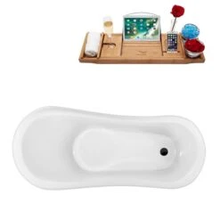 Streamline 63-in L X 28.3-in W White Acrylic Oval Clawfoot Bathtub With Internal Drain And Tub Tray