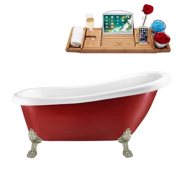 Streamline 27.5-in X 61-in Oval Red And Brushed Nickel Acrylic Clawfoot Bathtub With Brushed Gold Drain And Tray