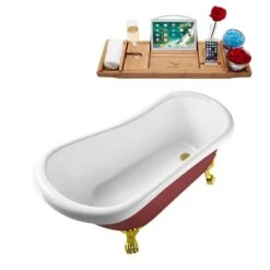 Streamline 27.5-in X 61-in Oval Red And Gold Acrylic Clawfoot Bathtub With Brushed Gold Reversible Drain And Tray