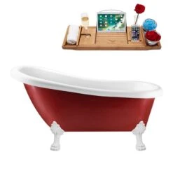 Be the first to review “Streamline 27.5-in X 61-in Oval Red And White Acrylic Clawfoot Bathtub With Brushed Gun Metal Drain And Tray” Cancel reply