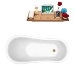 Be the first to review “Streamline 27.5-in X 61-in Oval White Acrylic Clawfoot Bathtub With Brushed Gold Reversible Drain And Tray” Cancel reply