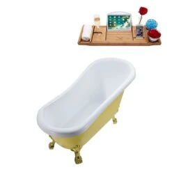 Be the first to review “Streamline 27.5-in X 61-in Oval Yellow And Brushed Gold Acrylic Clawfoot Bathtub With Polished Chrome Drain And Tray” Cancel reply