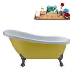 Be the first to review “Streamline 27.5-in X 61-in Oval Yellow And Brushed Gun Metal Acrylic Clawfoot Bathtub With Polished Gold Drain And Tray” Cancel reply