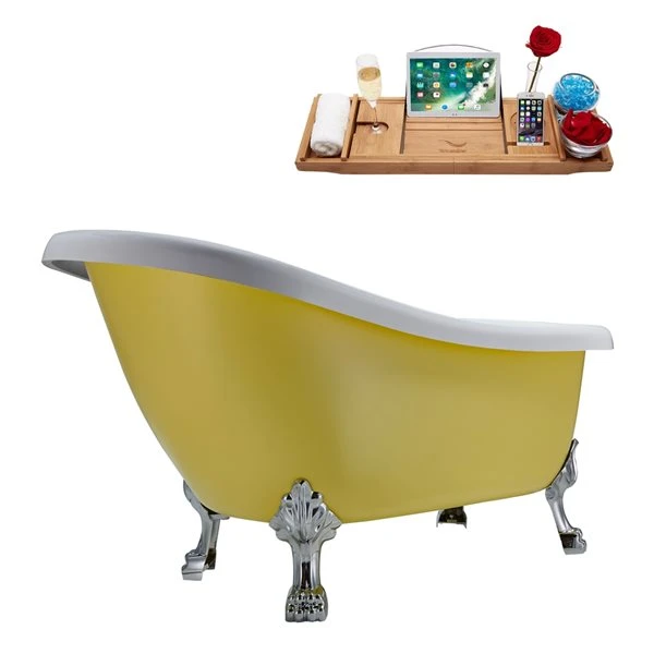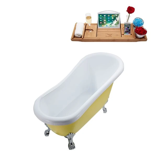 Streamline 27.5-in X 61-in Oval Yellow And Chrome Acrylic Clawfoot Bathtub With Brushed Gold Reversible Drain And Tray