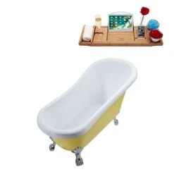 Be the first to review “Streamline 27.5-in X 61-in Oval Yellow And Chrome Acrylic Clawfoot Bathtub With Brushed Gold Reversible Drain And Tray” Cancel reply