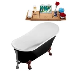 Streamline 27.6-in W X 59.1-in L Black Acrylic Oval External Drain Clawfoot Bathtub With Tub Tray Included