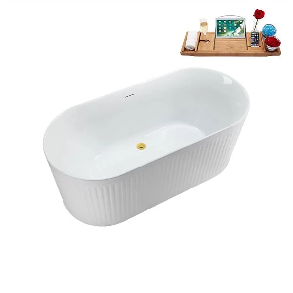 Streamline 27.6 X 59.1-in Glossy White Acrylic Freestanding Bathtub And A Polished Gold Center Drain With Tray