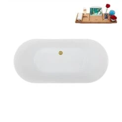 Streamline 29.5-in W X 59.1-in L White/Brushed Gold Oval Center Drain Freestanding Bathtub With Tray