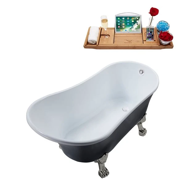 Streamline 27W X 55L Matte Black Acrylic Clawfoot Bathtub With Brushed Nickel Feet And Reversible Drain With Tray