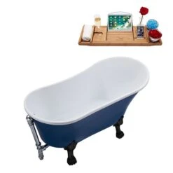 Be the first to review “Streamline 27W X 55L Matte Dark Blue Acrylic Clawfoot Bathtub With Matte Black Feet And Reversible Drain With Tray” Cancel reply