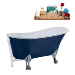 Be the first to review “Streamline 27W X 55L Matte Dark Blue Acrylic Clawfoot Bathtub With Polished Chrome Feet And Reversible Drain With Tray” Cancel reply