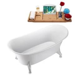 Streamline 63-in L X 28.3-in W White Acrylic Oval Clawfoot Bathtub With Internal Drain And Tub Tray