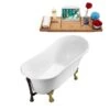 Streamline 29.5-in W X 59.1-in L White/Brushed Gold Oval Center Drain Freestanding Bathtub With Tray