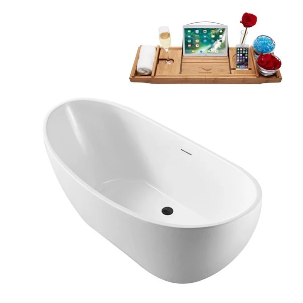 Be the first to review “Streamline 28.3-in W X 62.2-in L Brushed Gunmetal/White Acrylic Oval Center Drain Freestanding Bathtub With Tray” Cancel reply