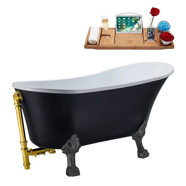Streamline 28.3-in W X 63-in L Black Acrylic Clawfoot Bathtub – Tub Tray And External Drain Included