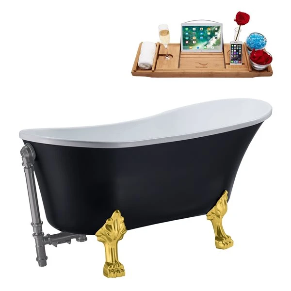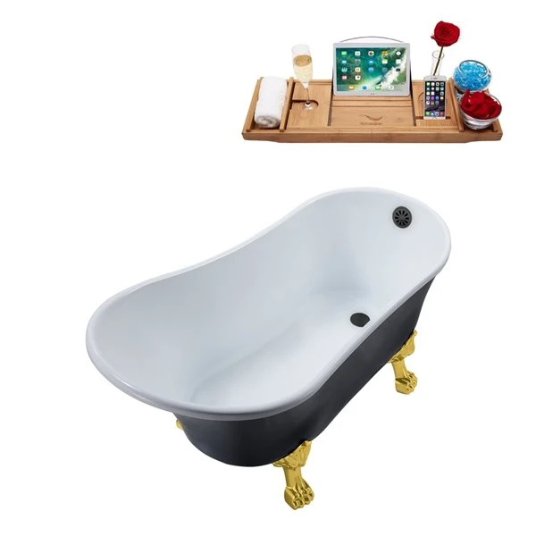Streamline 28.3-in W X 63-in L Black Acrylic Oval External Drain Clawfoot Bathtub With Tub Tray