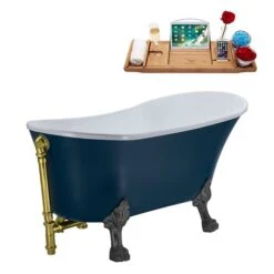 Streamline 32-in W X 60-in L Acrylic Blue/Polished Gold Oval Center Drain Clawfoot Bathtub With Tray
