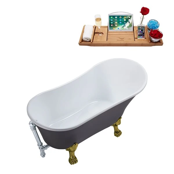 Streamline 28.3-in W X 63-in L Grey Acrylic Clawfoot Bathtub With Tub Tray And External Drain
