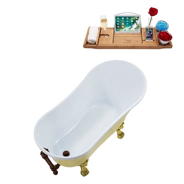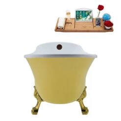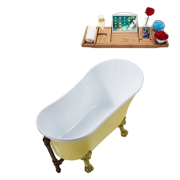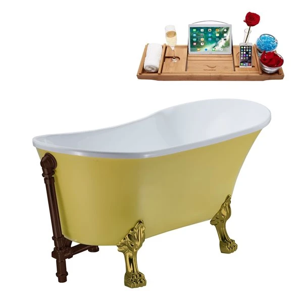 Streamline 28.3-in W X 63-in L Yellow Acrylic External Drain Clawfoot Bathtub With Tub Tray