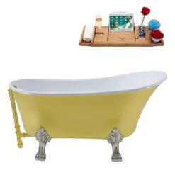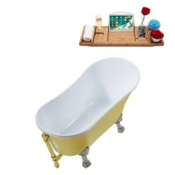 Streamline 28.3-in W X 63-in L Yellow Acrylic Oval Clawfoot Bathtub With External Drain And Tub Tray Included