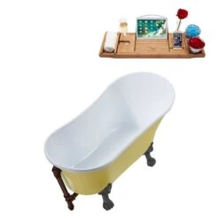 Streamline 28.3-in W X 63-in L Yellow Acrylic Oval Clawfoot Bathtub With Tub Tray And External Drain