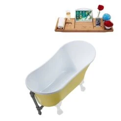 Streamline 28.3-in W X 63-in L Yellow Acrylic Oval External Drain Clawfoot Bathtub With Tub Tray