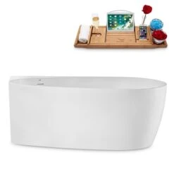 Be the first to review “Streamline 28.7-in W X 59.1-in L White/Brushed Gold Acrylic Oval Reversible Drain Freestanding Bathtub With Tray” Cancel reply