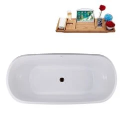 Streamline 28W X 59L Matte Black Acrylic Bathtub And A Matte Oil Rubbed Bronze Center Drain With Tray