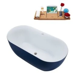 Be the first to review “Streamline 28W X 59L Matte Dark Blue Acrylic Bathtub And A Brushed Nickel Center Drain With Tray” Cancel reply