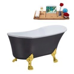 Be the first to review “Streamline 28W X 59L Matte Grey Acrylic Clawfoot Bathtub With Polished Gold Feet And Reversible Drain With Tray” Cancel reply