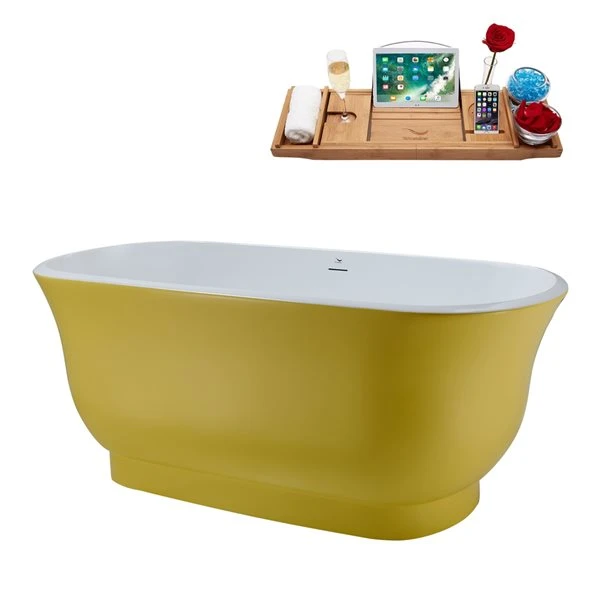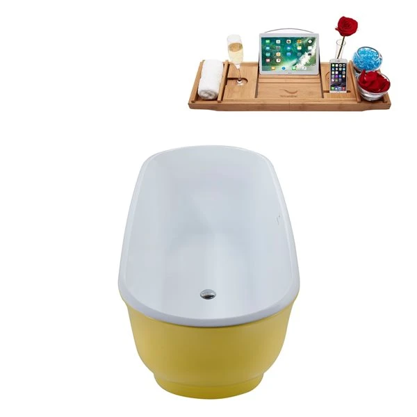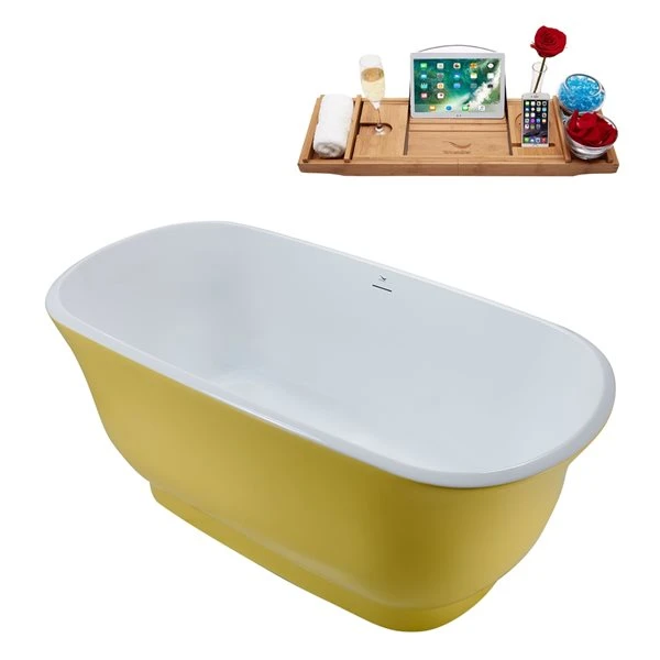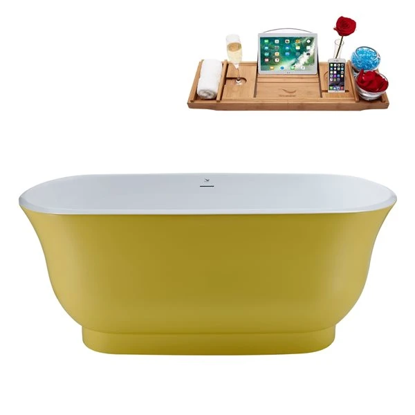 Streamline 28W X 59L Matte Yellow Acrylic Bathtub And A Polished Chrome Center Drain With Tray