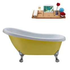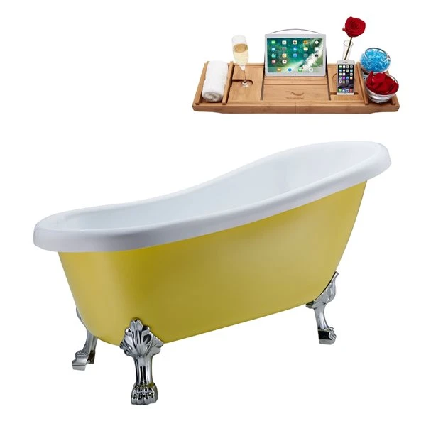 Streamline 28W X 61L Matte Yellow Acrylic Clawfoot Bathtub With Polished Chrome Feet And Reversible Drain With Tray