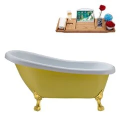 Streamline 28W X 61L Matte Yellow Acrylic Clawfoot Bathtub With Polished Gold Feet And Reversible Drain With Tray